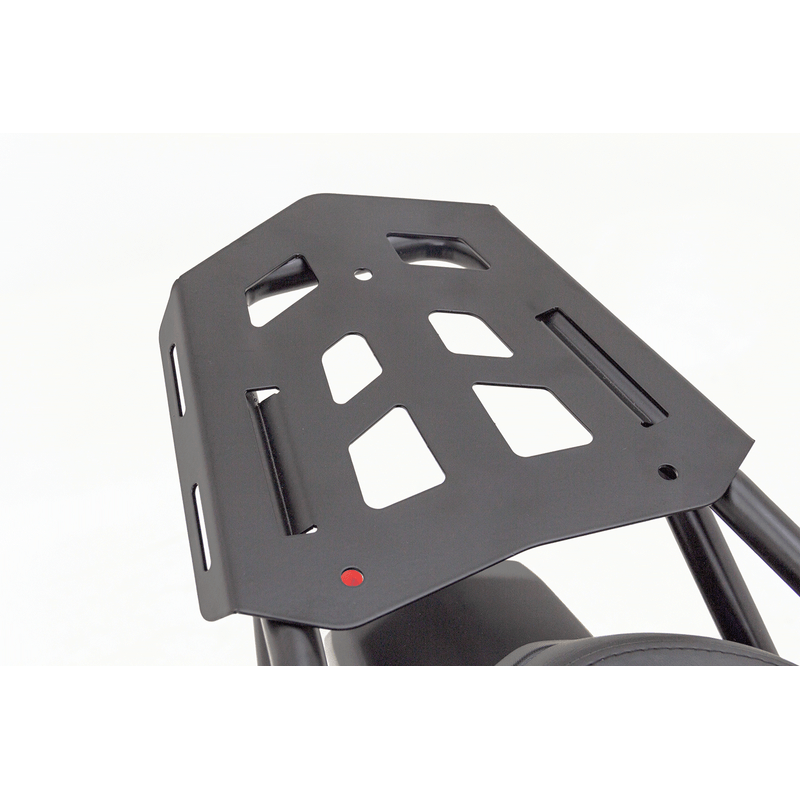 Esta base para alforja superior está recubierta con pintura electrostática negro liso mate, lo que le da un acabado muy premium y que no se oxida con facilidad.